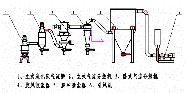 六、立式流化床多級(jí)串聯(lián)氣流粉碎機(jī)工藝圖: