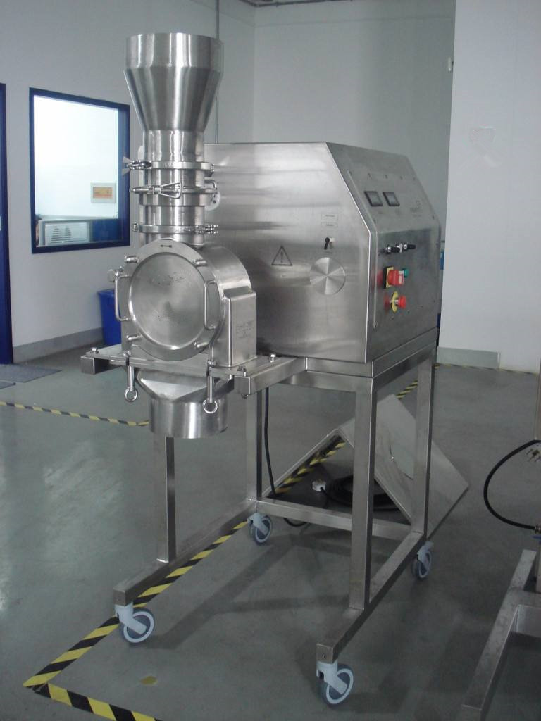 本實用新型涉及一種可粉碎谷物、豆類作物秸稈及雜草物料的粉碎機。該機的軸承臺和定刀臺在一個平面上,縮短了主軸長度,所以結(jié)構(gòu)緊湊,篩道為階梯形,加大了篩片包角,排粉面積增大,使粉碎效果好,篩片易更換。